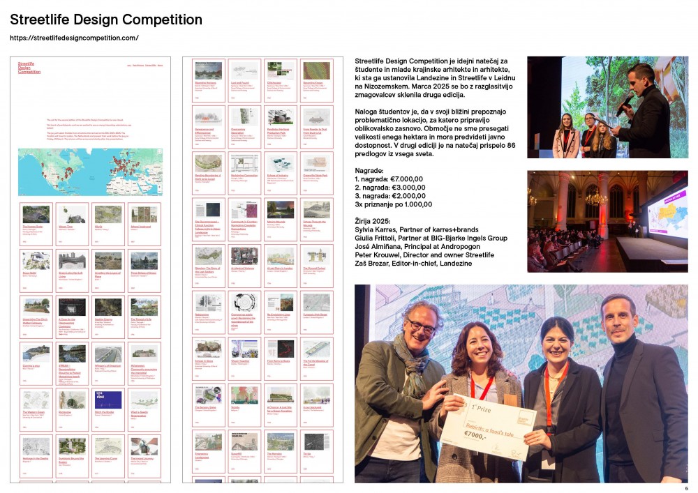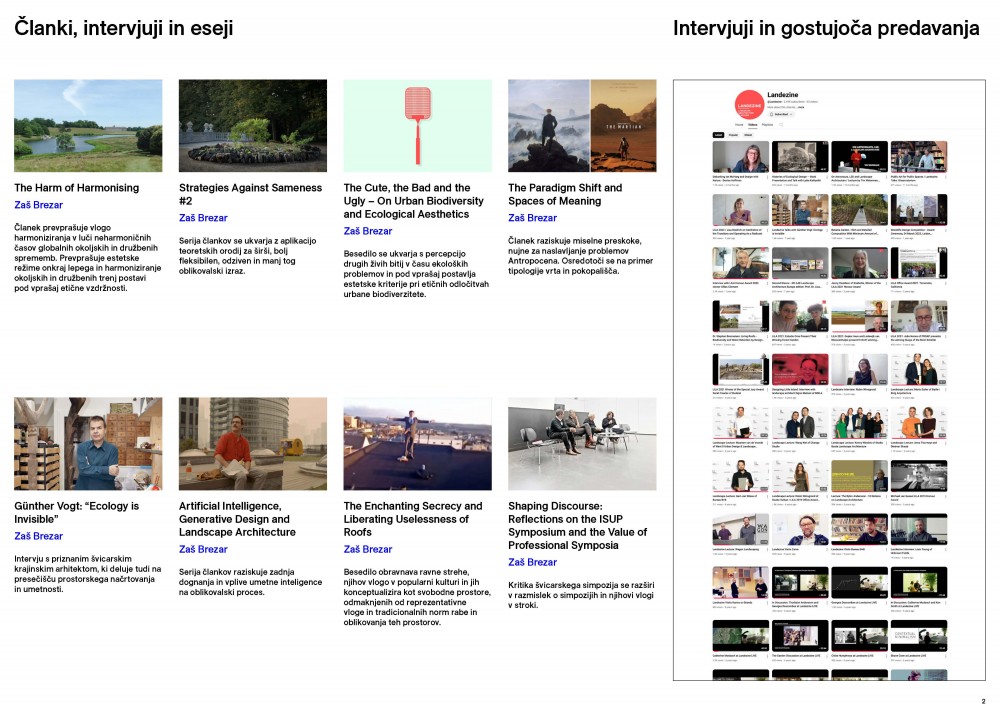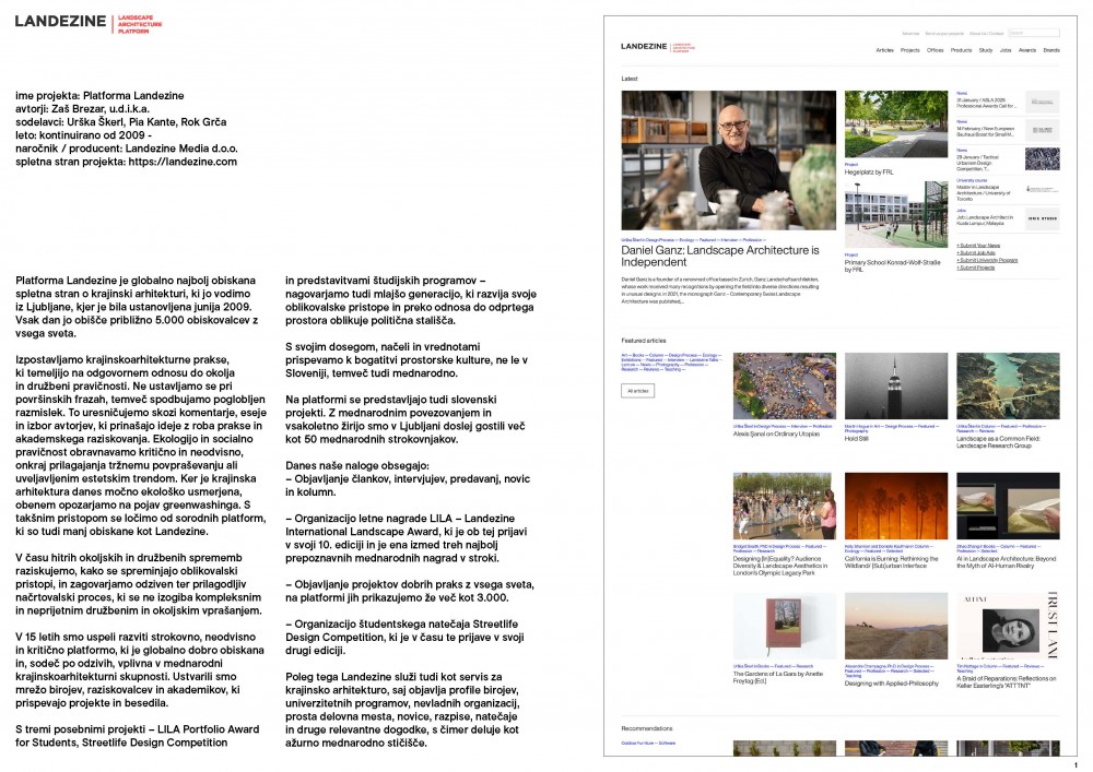 Platforma Landezine je tako prevzela vlogo osrednjega moderatorja na svetovni krajinskoarhitekturni sceni in s tem pomembno prispeva k prepoznavanju globalnih, izjemno pomembnih vprašanj, ki se v zvezi z našo skupno prihodnostjo odpirajo v prepletanju različnih strok.