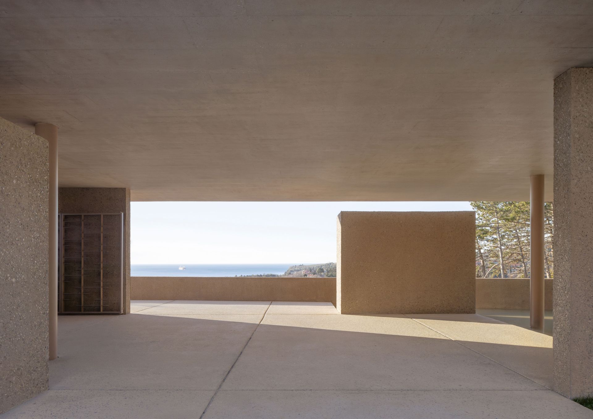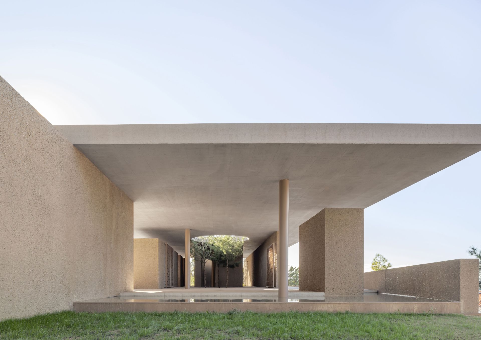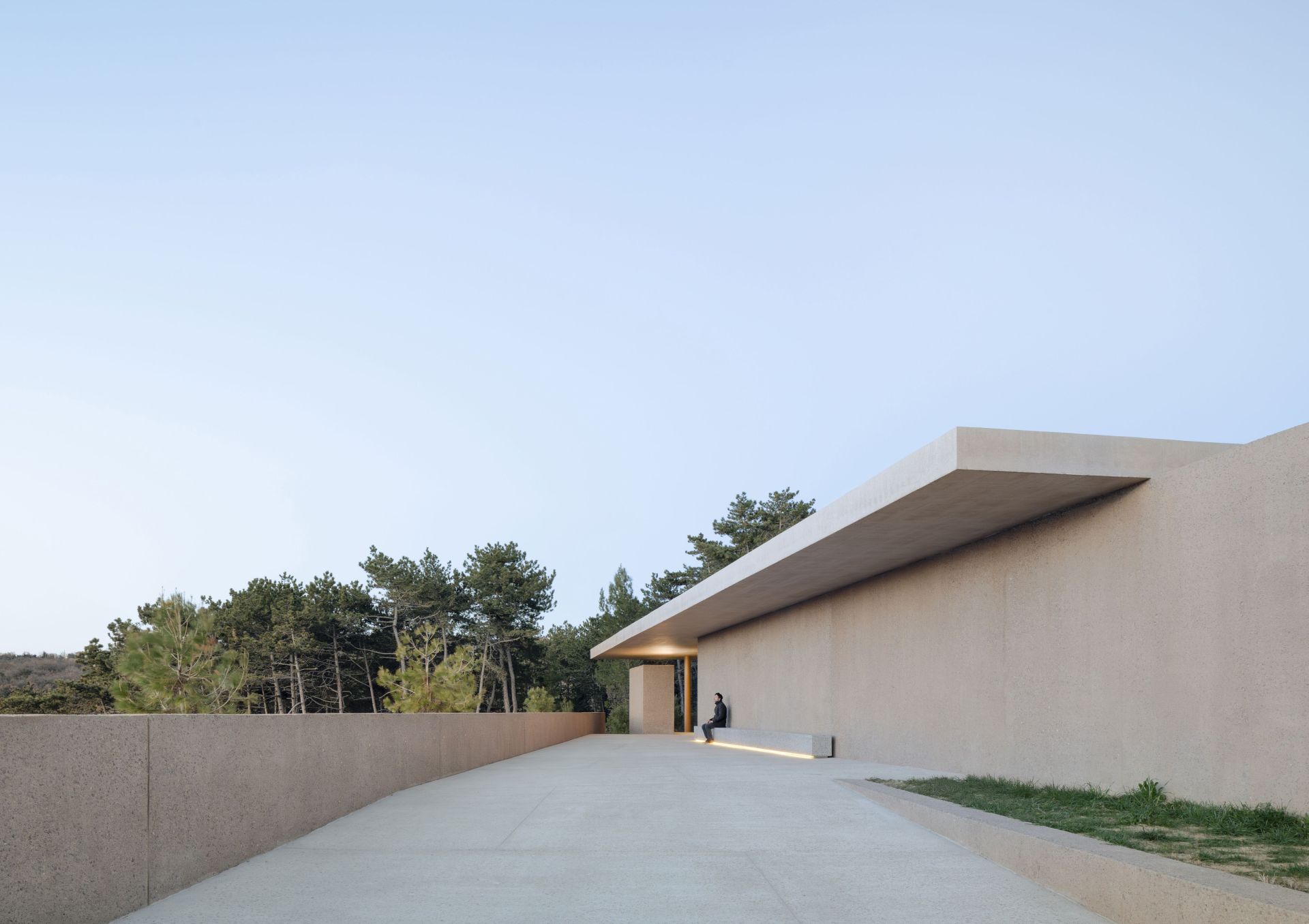 Pot se prične z mrliško vežico, ki vodi mimo vodnega ambienta in reinterpretacije zvonika. Streha, skozi katero rastejo drevesa, pri tem predstavlja ločnico med svetom živih in svetom mrtvih. Ta kraj prehoda z abstraktnimi elementi nakazuje teme očiščenja, transcendentnosti, minevanja in cikličnosti življenja, in v sožitju s širšo krajino mu uspe ustvariti edinstveno kontemplativno vzdušje. Posluh avtorjev za merilo in specifike lokacije je odprl možnost za večplastno arhitekturno delo, iz katerega lahko razberemo še drugo pomembno lastnost. Posebna pozornost je posvečena materialu, ki se s svojo teksturo in barvo odziva na pomen kraja. Zemeljska barva betona ustvarja toplo atmosfero in z gradacijo tekstur prisotnost zemlje subtilno postavi v izkustvo že ob vstopu, v svoji neposredni materialnosti pa skozi sekvence gozda odzvanja do grobnih polj.