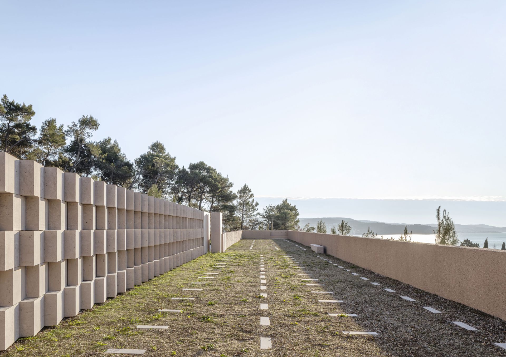 Zasnova se na več ravneh spogleduje s preseganjem merila. Parkovni značaj pokopališča in navezovanje na gozdne poti inovativno nagovarjata neposredni širši kontekst. Hkrati širši prostor krajine ter izpostavljeni stik s horizontom in nebom uporabnika usmerjata h kontemplaciji ter poglobljenemu doživljanju sveta in prostora, četudi znotraj strogo zamejenih območij grobnih polj. Nova ureditev se z zasaditveno zasnovo, alepskim borom in cipresovkami, uspešno umešča v kontekst krajine, prostoru pokopališča pa dodaja simbolne pomene. Zasnova kaže odlično obvladovanje vertikalne členitve območja, ki s preprosto zasnovo medsebojno povezanih teras rešuje višinsko prehajanje in navezave na okolico hkrati.